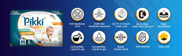 Key Features Quick Max Absorption technology to provide quick absorption and lonf lasting dryness. The Diaper pants that provide Super Comfort, Super Dryness and Super Protection to the baby. Zig-Zag Channels Middle Layer - It provides a large absorbing area and facilitates uniform liquid distribution and thereby, uniform absorption. Active Gel Bottom Layer - It contains gel crystals of hydrophilic polymer which helps in maximun absorption. 3D leak guard - Soft expandable elastic on the sides help prevent side leakage by locking the liquid into the side pockets from where it again gets absorbed. All the above features ensure dryness that lasts up to 12 hours which means a peaceful night's sleep for both mother and baby. Ideal for babies weighing 7-12 KG Other Features U-shaped ergonomic design ensures a snug fit and maximizes. It helps prevent heaviness and sagging. Skin friendly breathable materials which are gentle on the baby's delicate skin and protect against rashes. Superior soft materials and wide elastic bands which ensure maximum comfort for the baby.