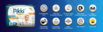 Key Features Quick Max Absorption technology to provide quick absorption and lonf lasting dryness. The Diaper pants that provide Super Comfort, Super Dryness and Super Protection to the baby. Zig-Zag Channels Middle Layer - It provides a large absorbing area and facilitates uniform liquid distribution and thereby, uniform absorption. Active Gel Bottom Layer - It contains gel crystals of hydrophilic polymer which helps in maximun absorption. 3D leak guard - Soft expandable elastic on the sides help prevent side leakage by locking the liquid into the side pockets from where it again gets absorbed. All the above features ensure dryness that lasts up to 12 hours which means a peaceful night's sleep for both mother and baby. Ideal for babies weighing 4-8 KG Other Features U-shaped ergonomic design ensures a snug fit and maximizes. It helps prevent heaviness and sagging. Skin friendly breathable materials which are gentle on the baby's delicate skin and protect against rashes. Superior soft materials and wide elastic bands which ensure maximum comfort for the baby.